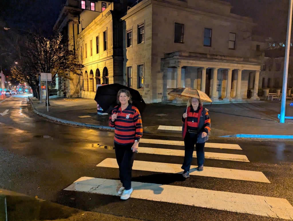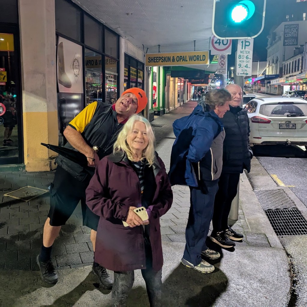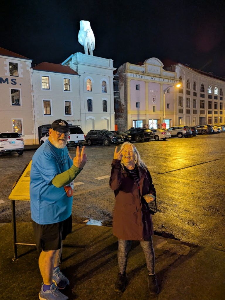 What a difference a Public Holiday makes. Not much traffic, can park anywhere and Dark MOFO brought the crowd in. Well to the New Sydney Hotel anyway. It was packed with Humans! Once a table was finished more came in. We were lucky in a way that we were a smallish group of a couple of dozen. Seemed like half of Hobart were trying to dink and eat in here tonight.