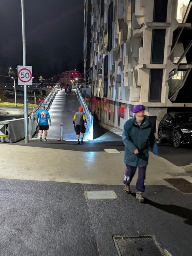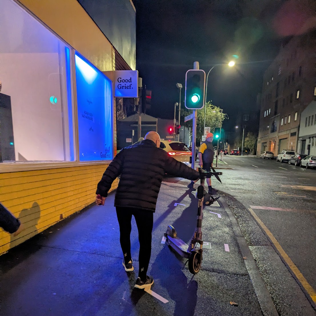 Along Bathurst St, a little bit of confusion as the trail was sketchy here. Governor Honkers took the opportunity to throw a Beam Scooter roughly to the floor. Over the Rose Garden Bridge, up to the Aquatic Centre on over the Bridge of Remembrance towards the Cenotaph.