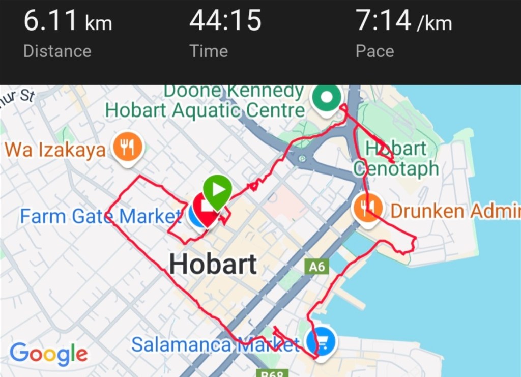 Walkers turned right at Customs House Hotel and the runners trail continued through to Salamanca Place. This was about the time that a bit of a heavy drizzle started, glad I had my brolly then too. Pretty much on home from here.