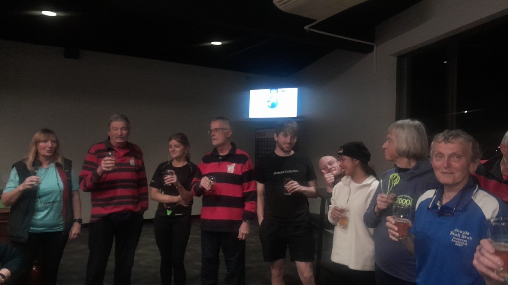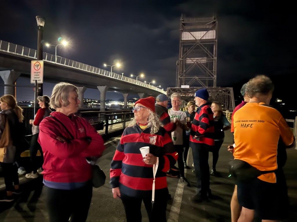 This’ll be a run to remember declared In the Raw. Who has ever had a Piss Stop in the middle of the Midlands Highway! We had arrived at the Piss Stop with plenty of time, enabling much banter, nibbles and drinks to go down before heading back to the nearby venue. I personally took the opportunity to walk back to the Lift Span and have a pee of the downwind side of the span, just because I could 🙂 ….