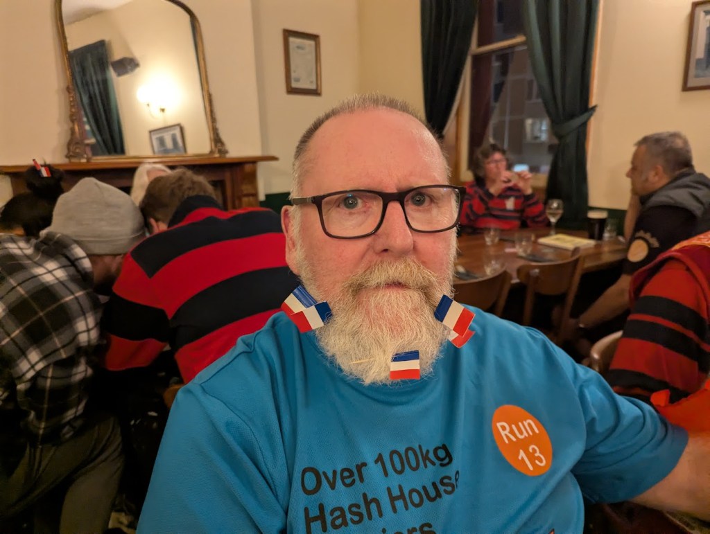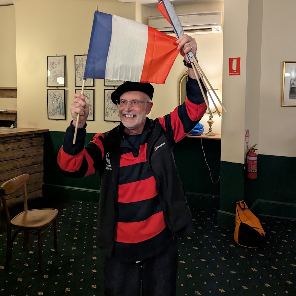 Bad News stepped up and gave everyone a “Wee French Flag”. What did you know, It was the National French Day. Pity he hadn’t advertised it as a theme earlier. Not to be outdone, we were in Teams and the Team Leader had a Bigger Flag. So after nearly everyone had order and paid, we were sent off.