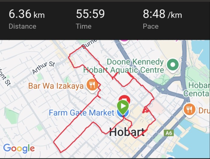 Back at the New Sydney Hotel after just 5 weeks. As I came in the door, In the Raw was at the bar, perched in front of the fire, the cozy spot. Suggested I have a Bruny Island Oxymoron. Nice schooner to start the night on. We had the whole upstairs this time, which allowed us to spread out. With 10 minutes to kick off time, the waitress came around to take orders. This really wasn’t enough time as In the Raw kept counting down the minutes to the run start.