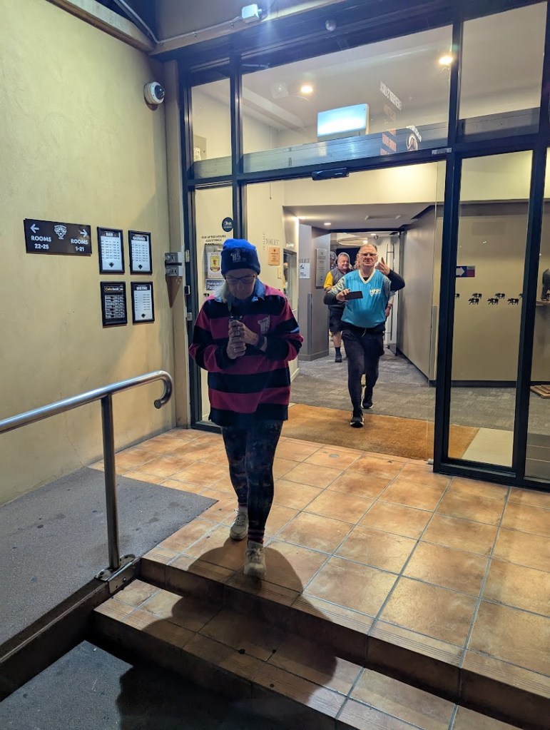Finally back at the pub, meals served and the Lip session was about to start as the night was dragging on and it was getting past peoples bed times. Urang snuck in from a meeting he had been having in the next room. Just wanted a free drink I think. Now to remember to find a different hat for the run next week.