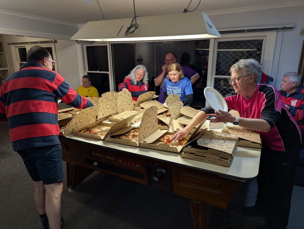 Hashers arriving back in dribs and drabs, the ute load of Pizza boxes arrived. Pepp Pizza did some good business tonight and no one went hungry. There was about 5 full Pizzas left at the end.