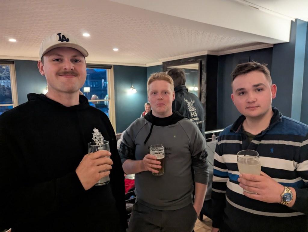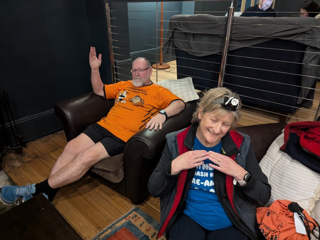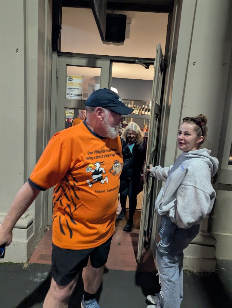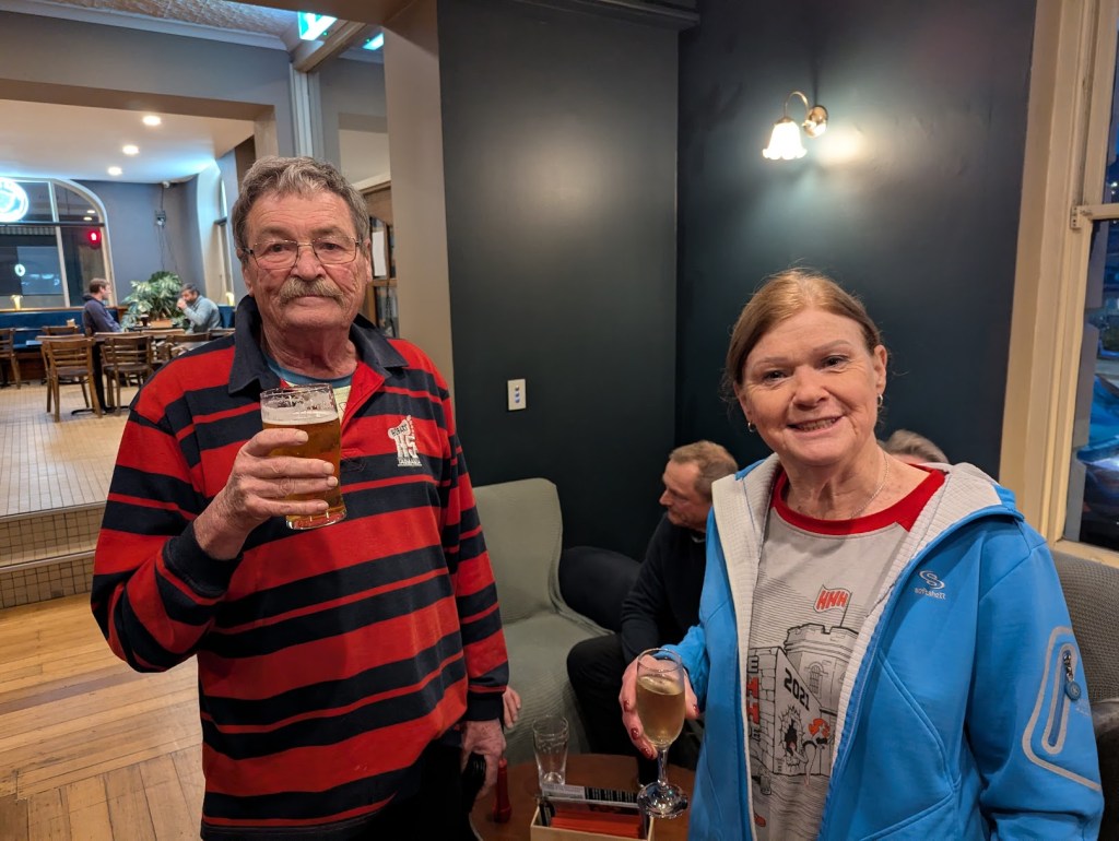So as I knew there was good Tassie Beers on tap I arrived early to grab a Pint of the Blood Orange Stout and head towards to fire. There was already carnage happening here with Just Kidding and Lord Limp already ensconced in the prime comfy chairs, much to the disappointment of In the Raw. “Shortly” after Cracker arrived and also tried to muscle her way in to this prime location, then Grizzly snuck into the seat and Prickit snavelled the other.