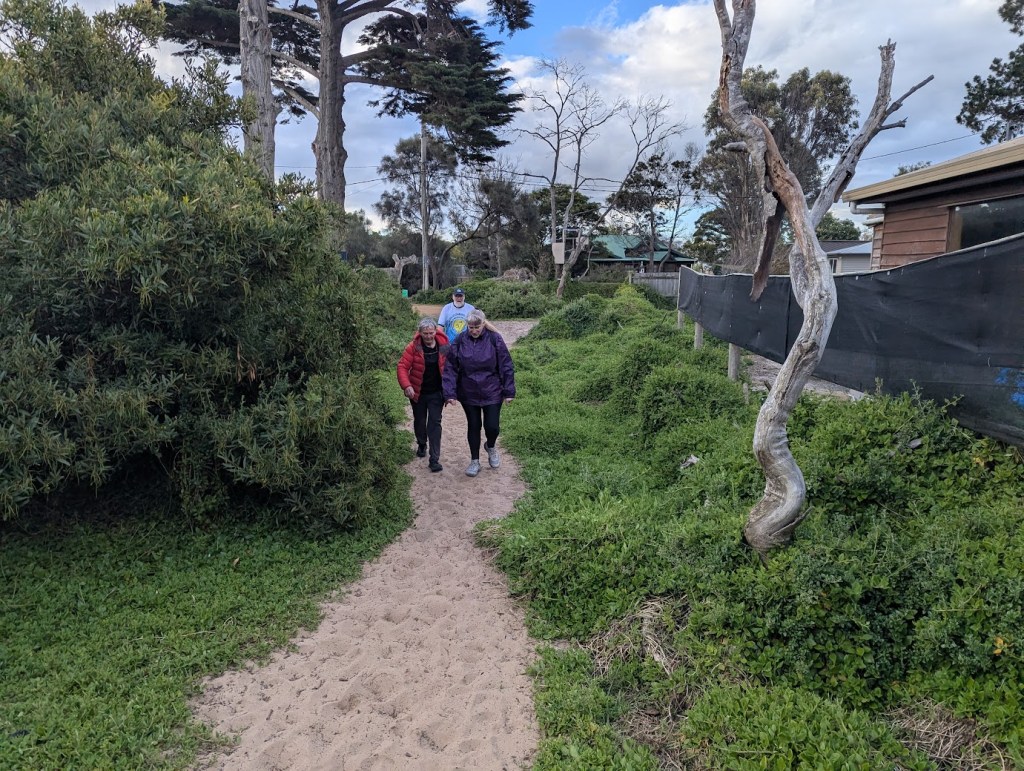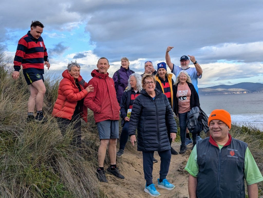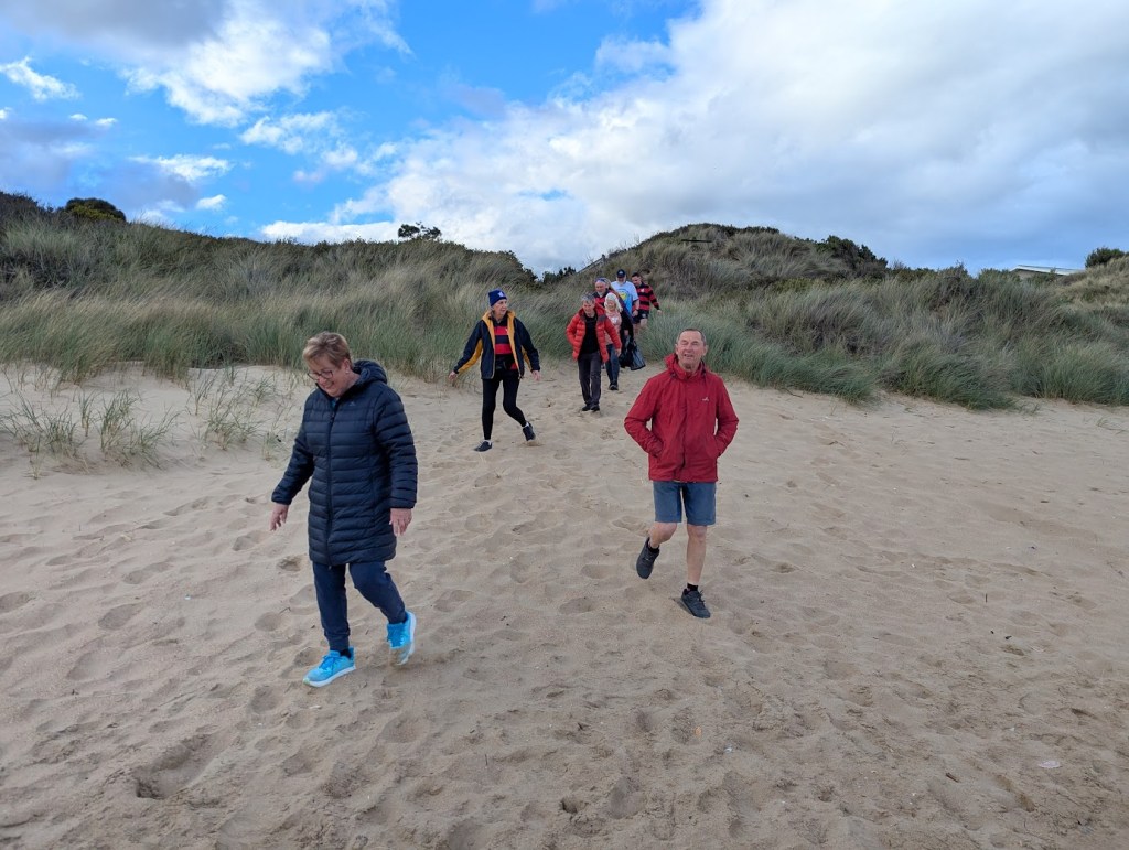 The walkers turned into Thompson Way and made it through to the Beach. Runners went further up to the Cape Deslacs Track before they made their way also to the beach.