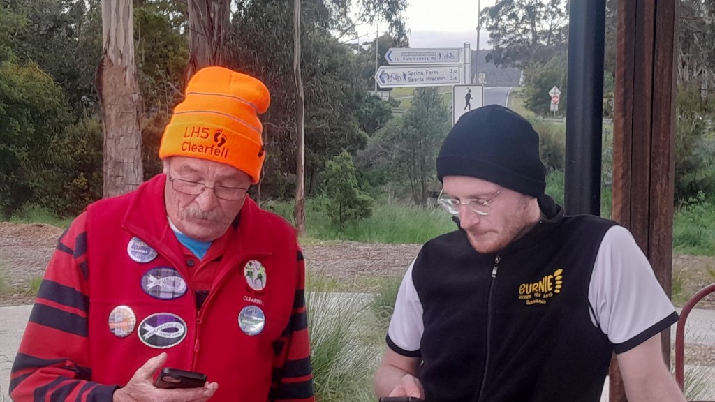 Up to the end of Campbell St and back under the Huon Highway. Runners split of here, with the walkers heading along Foley Rd, then through the reserve to Willowbend Rd.