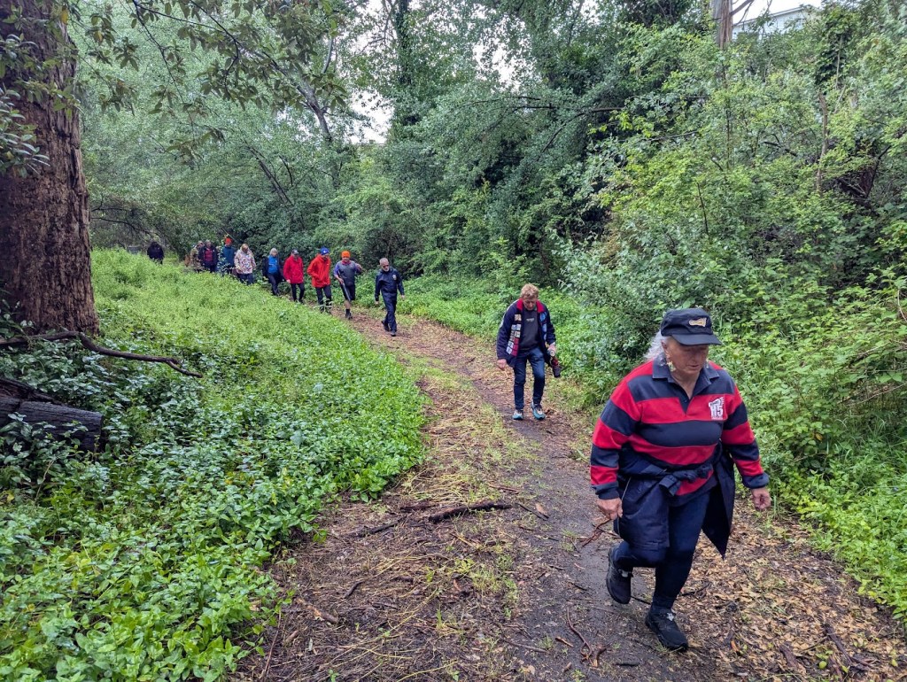 Eventually as it turned 6.31pm, Sonar called us to order. The trail was set on Flour, chalk and shredded paper if it was still there. Runners off to the front, walkers past the playground to towards the footbridge.
