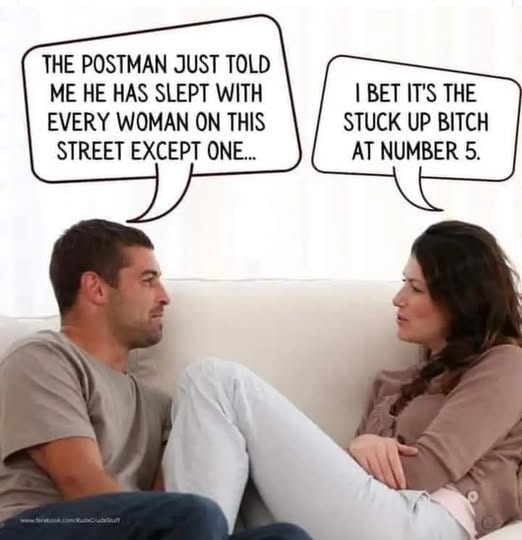 Then the husband replies, “No, yours was holding up the fucking tree!”