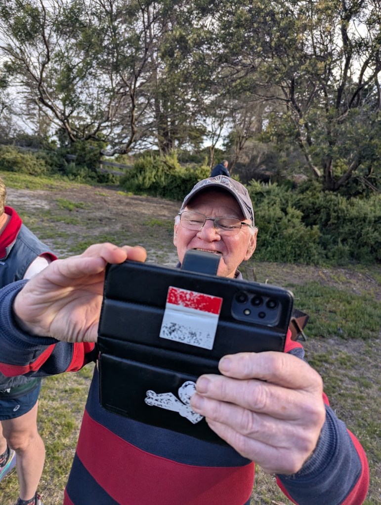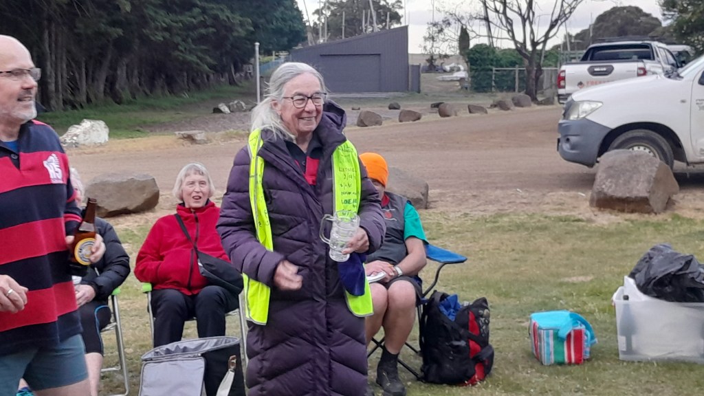 The venue for tonight is one we have used several times before, so some Hashers were concerned about a certain Single Hill that might be used today. The temperature was a little low this evening with a fairly steady wind and some dark clouds. When the Sun shone through, the temperature was not too bad. Viagra just happened to have a bottle of Grant’s Whiskey floating around his ute that certainly helped insulate those setting up.