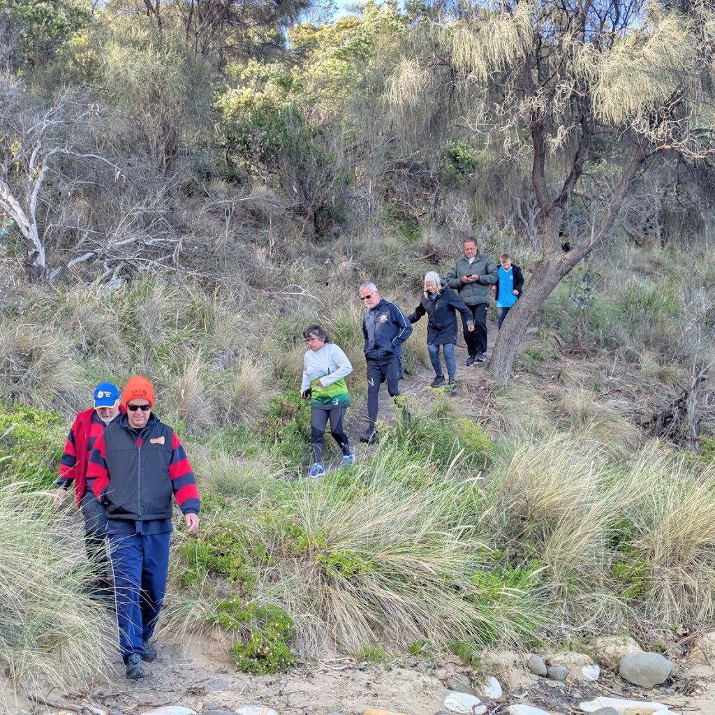 After about 800 metres the runners and walkers split. The walkers coming down on to the Beach for an easy stroll towards Bambra Reef Point and a blue Poo bag tied in a bow.