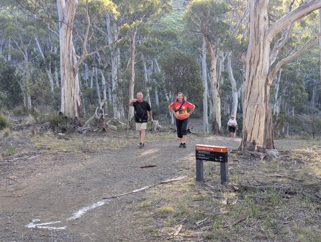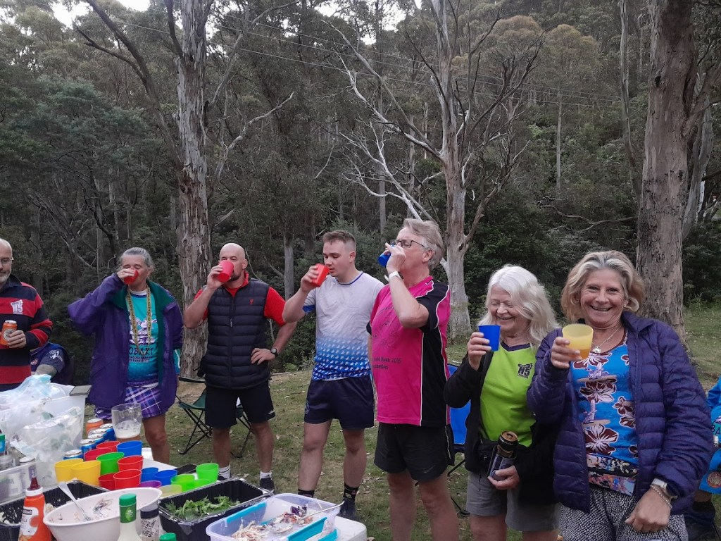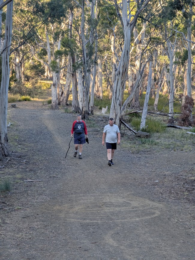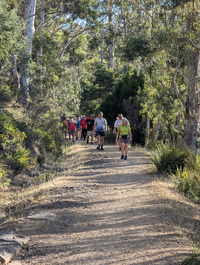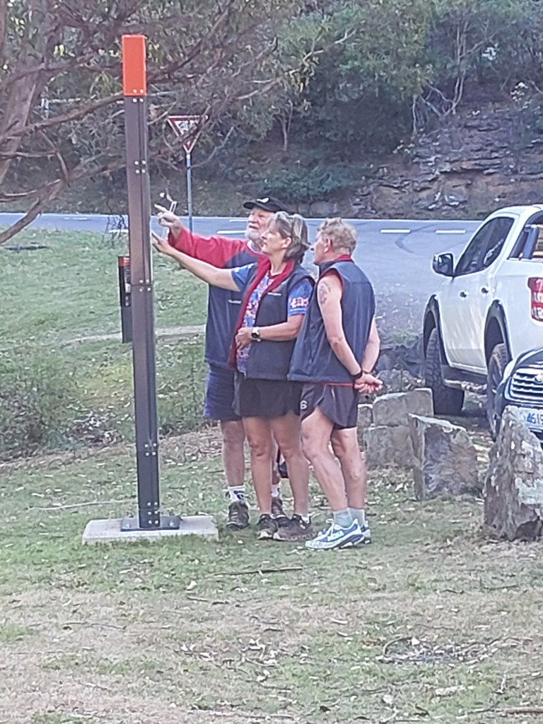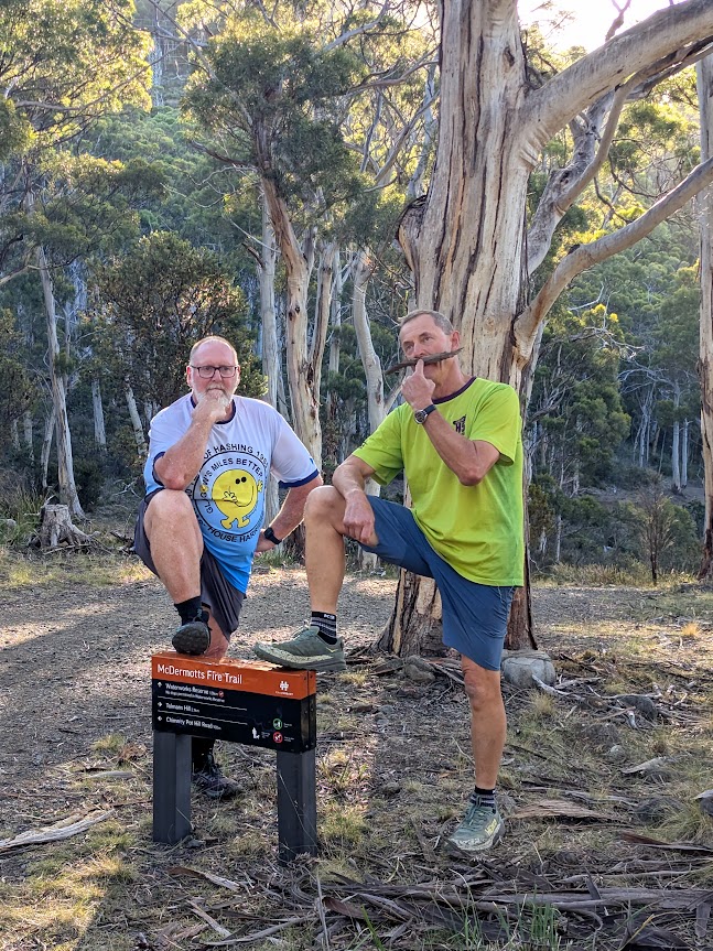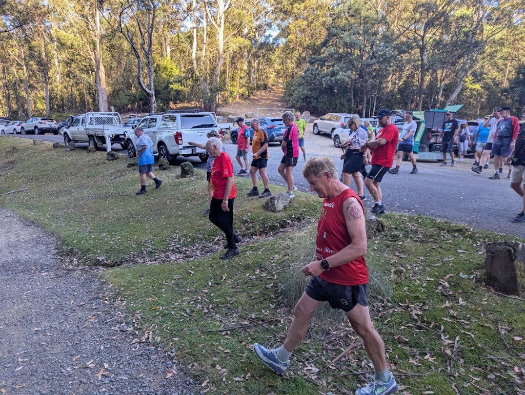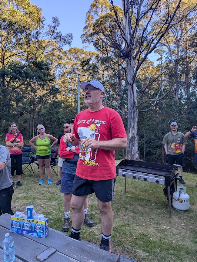Once we were all settled and had paid up, Organ Grinder gave his briefing on the trail. The walk would be 4km (3.8km) and the run would be 8km (yes) a quick 5km downhill with a 3km return (groan). We were then sent off down the Pipeline Track.