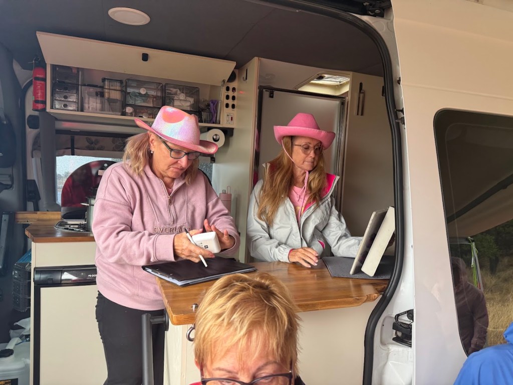 Bus will be parked on Marion Bay Road (near Townsend Lane) above the main car park at the Showgrounds.