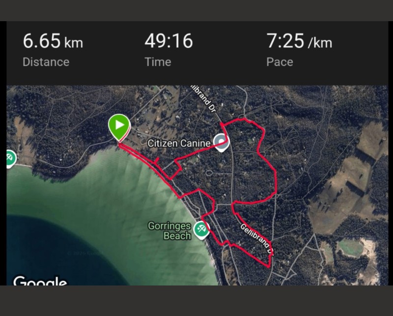 The run being 6.65Km and the walk 5.4Km with a long walk back along the beach watching the kite sailors.