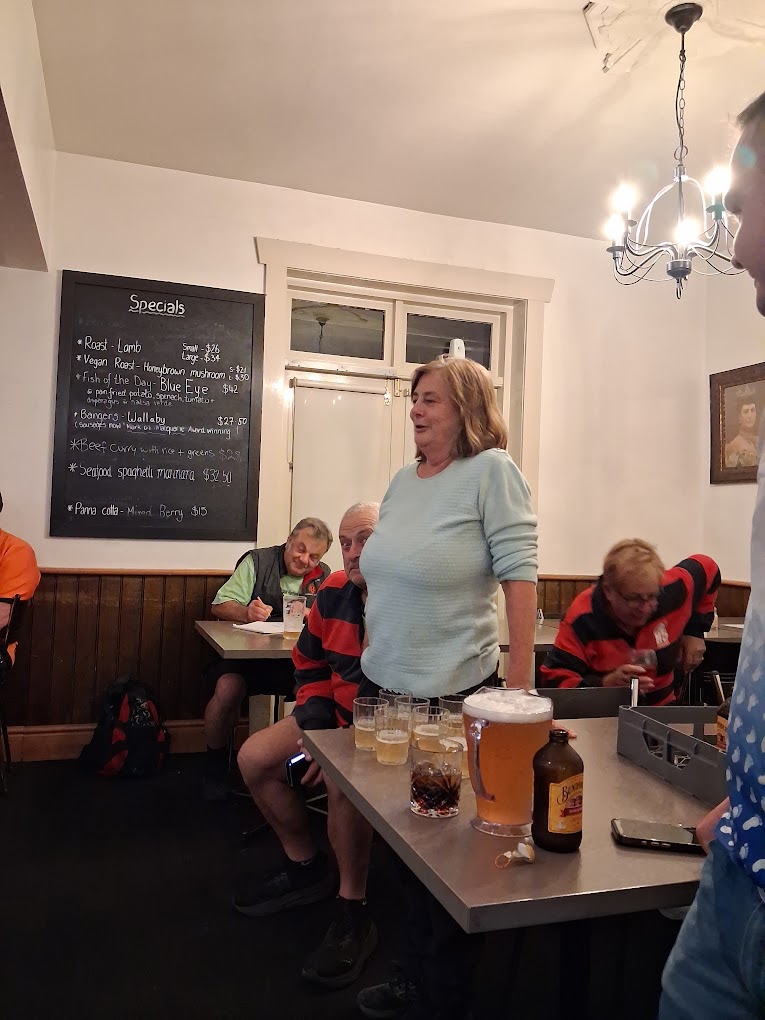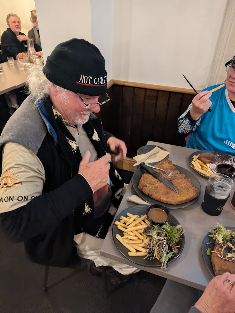 Back at the Pub, the meals started coming out. Some Hashers did not realise how big the Super Schnitzel was in size (2 plates needed).