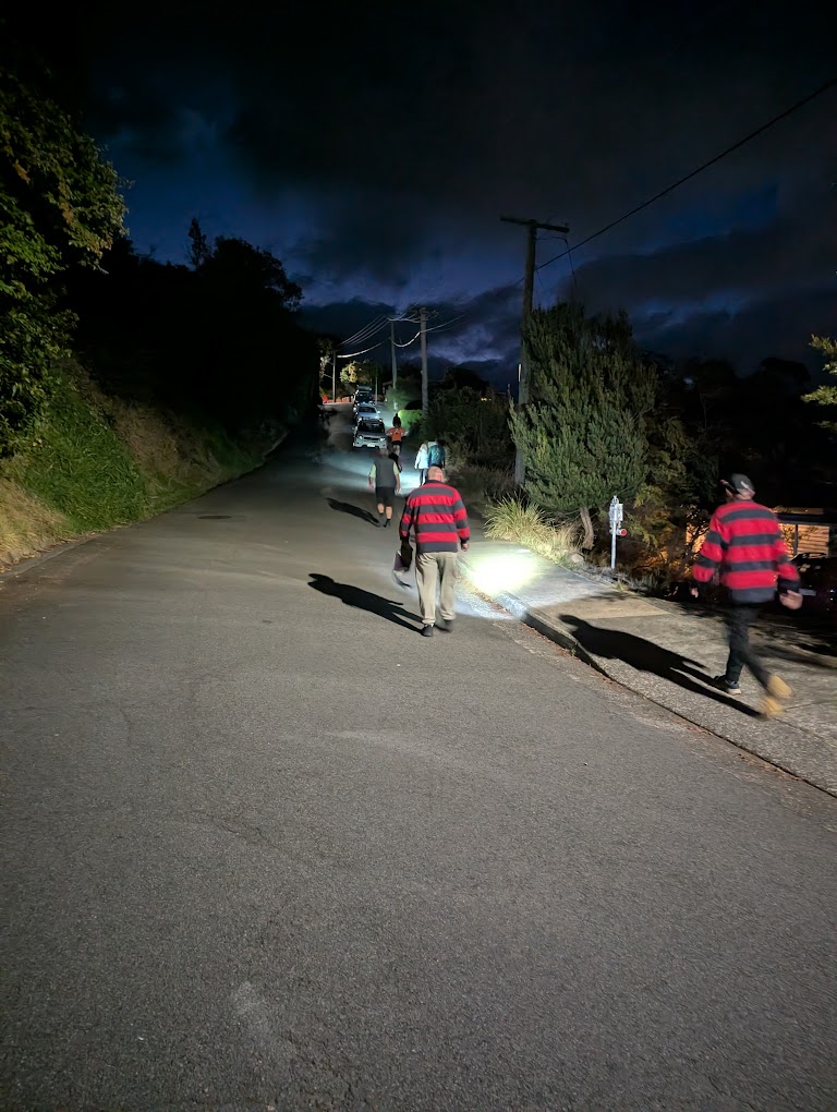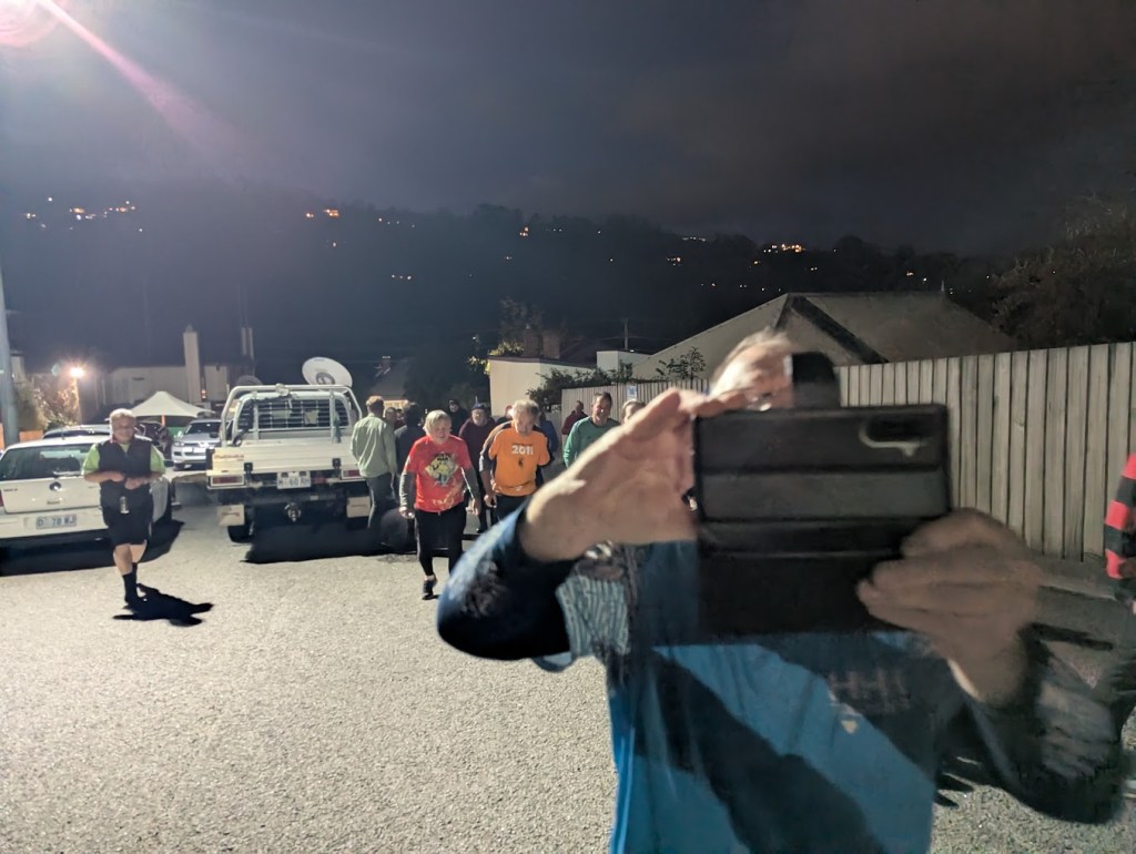 Well it was a fairly balmy night with it being not too cold under the Mountain. There was (what seemed like) quite a few Hashers that came along for Fish Fingers first trail. There was actually 32 there, but it did seem like more.